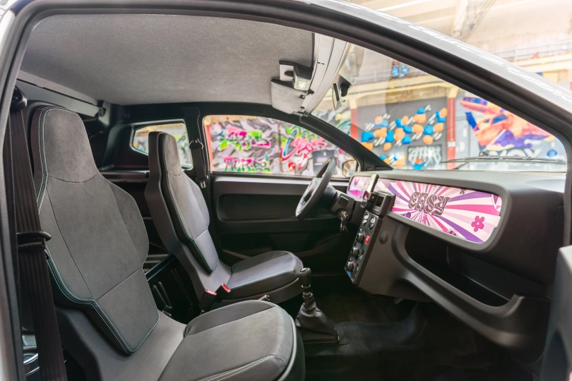 | Seter i sort TEP-nubuck med jadegrønne kontrastsømmer |
